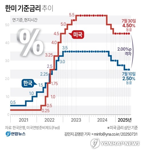 연준이 트럼프 행정부 출범 이후 개최된 다섯 번의 FOMC에서 5회 연속으로 금리를 동결함으로써, 한미 금리차는 상단 기준으로 2.0%p를 유지하게 됐다.