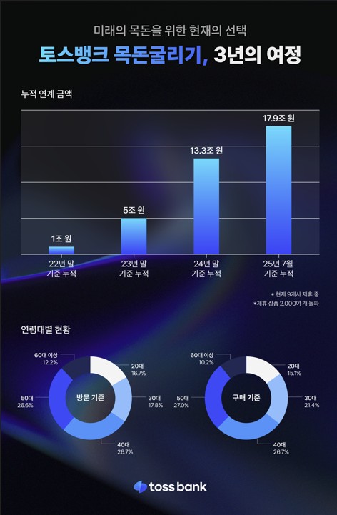 ▲ 인터넷전문은행 토스뱅크는 자사 자산관리 플랫폼 '목돈굴리기' 서비스가 출시 3주년 만에 누적 연계 금액이 약 18조원에 육박했다고 14일 밝혔다. 토스뱅크 '목돈굴리기'는 다양한 금융사와의 제휴를 통해 채권, 발행어음, RP(환매조건부채권) 등 폭넓은 금융 상품을 한눈에 비교하고 간편하게 가입할 수 있는 서비스다. (서울=연합뉴스)