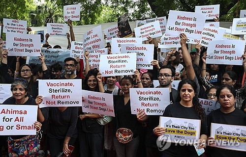 앞서 대법원은 수도 뉴델리에서 한 소녀가 떠돌이 개에 물린 후 광견병으로 사망했다는 언론 보도가 나온 후인 지난 11일 뉴델리를 포함한 델리와 주변 지역의 떠돌이 개를 영구 격리하라고 명령했다.