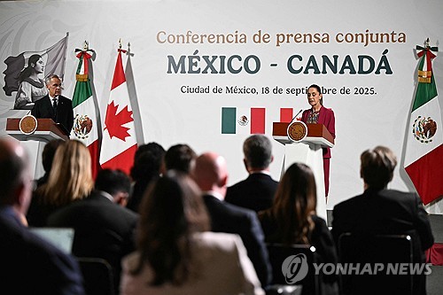 클라우디아 셰인바움 멕시코 대통령과 마크 카니 캐나다 총리는 18일(현지시간) 멕시코시티에서 정상회담을 하고 미국·멕시코·캐나다 협정(USMCA)에 기반한 북미 산업 경쟁력 제고에 노력하기로 했다고 밝혔다.
