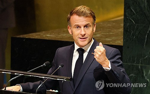(파리=연합뉴스) 송진원 특파원 = 에마뉘엘 마크롱 프랑스 대통령이 유엔총회에서 '강자의 법칙'을 경고하며 도널드 트럼프 미국 대통령의 유엔 총회 연설을 간접 비판했다.