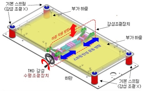 그러나 현재 일반 건축물에 적용되는 동조질량댐퍼는 고유 진동수에 맞춰 일대일로 설계·제작돼 설치 이후 고유진동수가 변하면 성능 저하나 진동 증폭 등 문제가 발생할 수 있다. 미세 조정이 필요하면 장비를 분해하고 재설치해야 해 시간과 비용이 추가로 드는 점도 문제로 지적됐다.