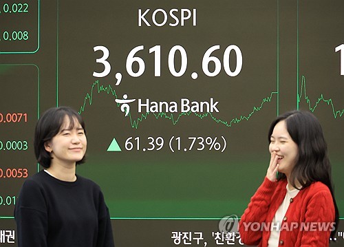 이날 코스피는 전장보다 61.39포인트(1.73%) 오른 3,610.60에 장을 마쳤다.