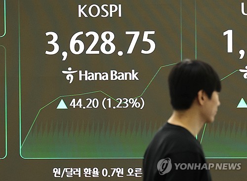 이날 오전 9시 18분 현재 코스피는 전장보다 46.22포인트(1.29%) 오른 3,630.77을 나타내고 있다.