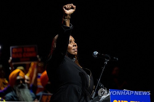 서울=연합뉴스) 김연숙 기자 = 도널드 트럼프 미국 대통령의 정적으로 꼽히는 레티샤 제임스 뉴욕주 법무장관 겸 검찰총장이 최근 대출사기 혐의로 기소된 후 13일(현지시간) 처음으로 공식 행사에 참석, 트럼프 대통령과의 싸움을 계속하겠다는 의지를 밝혔다.