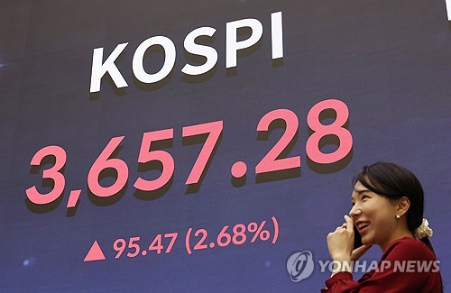 (서울=연합뉴스) 임은진 황철환 기자 = 15일 코스피가 3,650선을 돌파해 종가 기준 사상 최고치를 기록하면서 시가총액도 처음으로 3천조원을 넘어섰다.