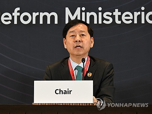 '구조개혁 의제 중 10년간 역내 기업환경 20% 개선 목표를 어떻게 설정했느냐'는 취재진 질의에 구 부총리는 "어떤 나라는 15%, 다른 나라는 25%를 줄일 수 있다고 해 평균적으로 20%로 결정했다"고 말했다.