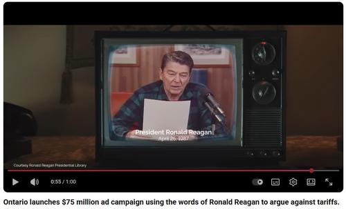 전반적으로 미국의 관세에 반대하는 내용으로 마지막에 레이건 전 대통령의 모습이 등장해 마치 레이건 전 대통령이 이런 말을 한 것처럼 보이게 했다.