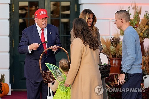 (워싱턴=연합뉴스) 박성민 특파원 = 도널드 트럼프 미국 대통령은 30일(현지시간) 백악관에서 영부인 멜라니아 여사와 함께 핼러윈 행사를 열었다.