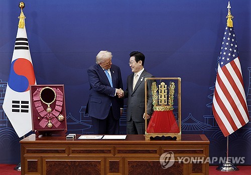 트럼프 대통령은 금관 모형을 받자 "특별히 잘 챙기라"고 지시한 것으로 전해졌다. 무궁화 대훈장을 보고선 "당장 걸고 싶다"고 말하기도 했다.