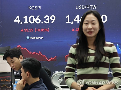 이날 코스피는 전장보다 33.15포인트(0.81%) 오른 4,106.39에 장을 마쳤다.