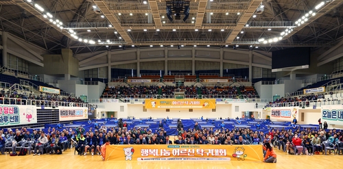 (서울=연합뉴스) 임은진 기자 = 한국거래소는 12일 부산 지역의 노인 복지관을 이용하는 어르신 1천100여 명이 참여한 '제3회 KRX와 함께하는 행복 나눔 어르신 탁구대회'를 지원했다고 밝혔다.