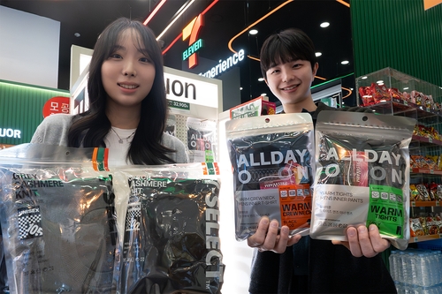 (서울=연합뉴스) 조민정 기자 = 편의점 세븐일레븐은 오는 22일부터 발열 내의 '올데이온웜크루넥' 6종과 '올데이온웜타이즈' 6종을 선보인다고 13일 밝혔다.