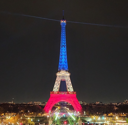 (파리=연합뉴스) 송진원 특파원 = 130명의 목숨을 앗아간 2015년 11월 프랑스 파리 연쇄 테러 10주기 추모식이 13일(현지시간) 엄수됐다.