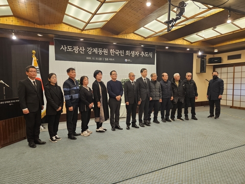 유족 대표로 추도사를 맡은 이칠규(65)씨는 모친과 큰누이에게서 아버지가 이야기한 사도광산의 생활을 전해 들었다면서 "결혼하고 얼마 뒤 강제로 끌려간 아버지는 돌아오기는 했지만 폐가 안 좋아 힘들어하셨고 항상 약을 달고 사셨다"고 전했다.