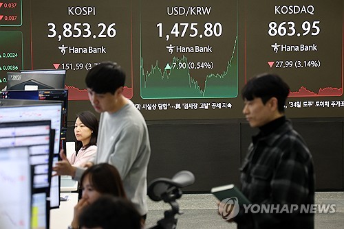 23일 연합인포맥스와 한국거래소에 따르면 지난 21일 코스피는 전주 대비 158.31포인트(3.95%) 하락한 3,853.26에 거래를 마쳤다.