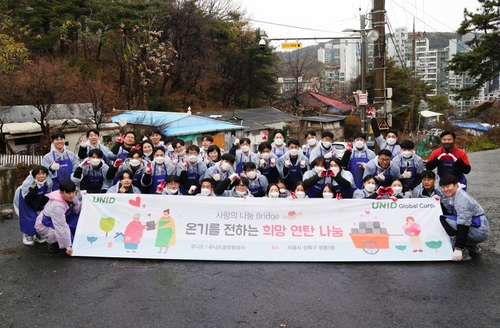 ▲ 유니드는 지난 27일 서울 성북구 일대에서 '사랑의 연탄 나르기' 봉사활동을 진행하고 총 4천장의 연탄을 기부했다고 28일 밝혔다. 이번 행사에는 유니드 및 유니드글로벌상사 임직원 43명이 참여했다. 사랑의 연탄 나르기 행사는 2014년부터 진행 중인 유니드의 사회공헌 프로그램으로, 겨울철 난방에 어려움을 겪고 있는 이웃을 지원하고자 기획됐다. (서울=연합뉴스)