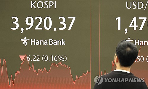 이날 코스피는 전장보다 6.22포인트(0.16%) 내린 3,920.37에 장을 마쳤다.