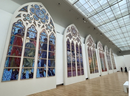 (파리=연합뉴스) 송진원 특파원 = 프랑스 파리 노트르담 대성당에 내년 말 설치될 현대적 스테인드글라스 모형들이 10일(현지시간)부터 그랑 팔레에서 전시된다고 BFM TV가 전했다.
