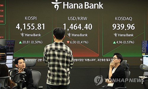 이날 오전 9시 2분 현재 코스피는 전장보다 18.94포인트(0.46%) 오른 4,153.94를 나타내고 있다.