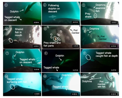 수집된 데이터를 분석한 결과 흡착 컵이 붙은 범고래와 함께 돌고래가 이동하고, 그 과정에서 범고래가 이동 방향을 바꿔 돌고래들을 따라 깊은 물 속으로 들어가는 사례들이 자주 포착됐다.
